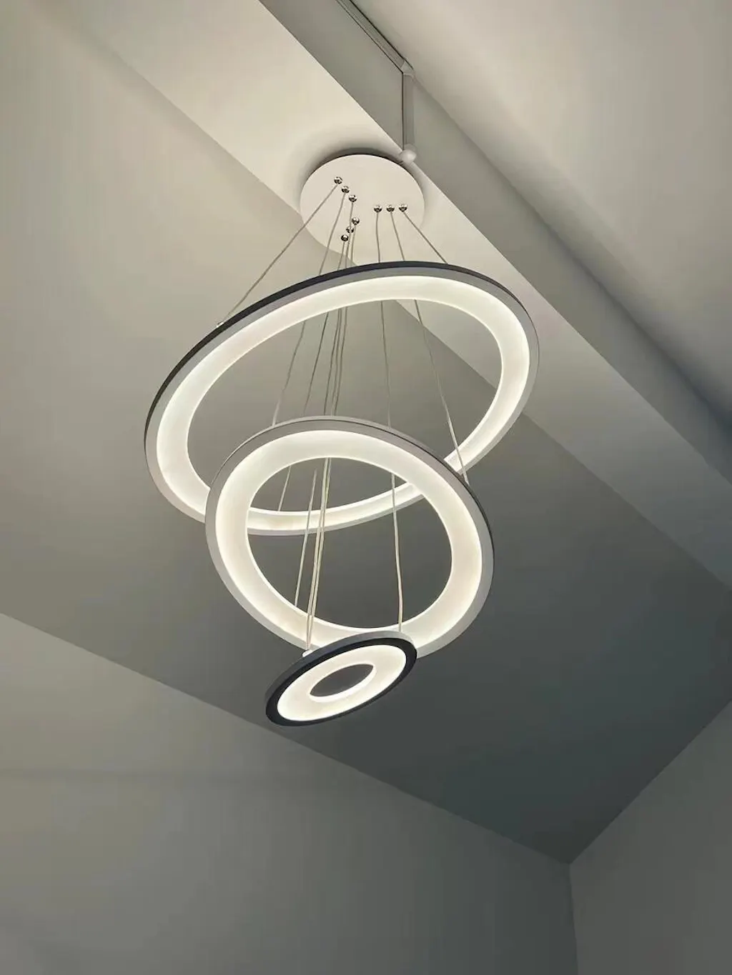 Las lámparas utilizan fuentes de luz LED para crear una iluminación ambiental suave y brillante. La forma de anillo enfoca y proyecta la luz, y habrá diferentes cambios de luz y sombra cuando se mire desde diferentes ángulos.