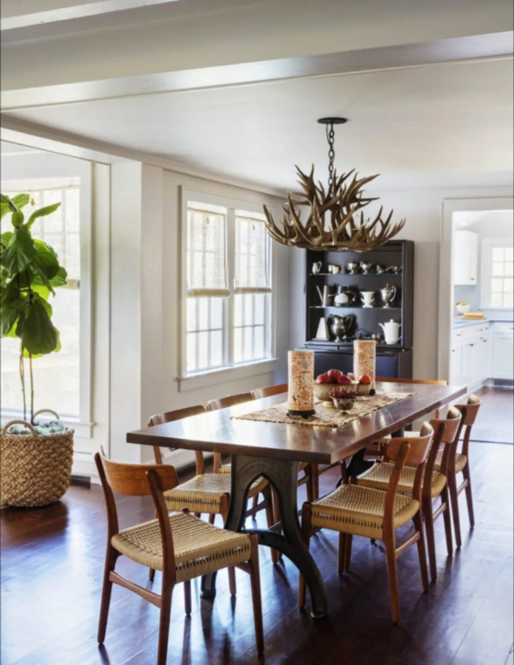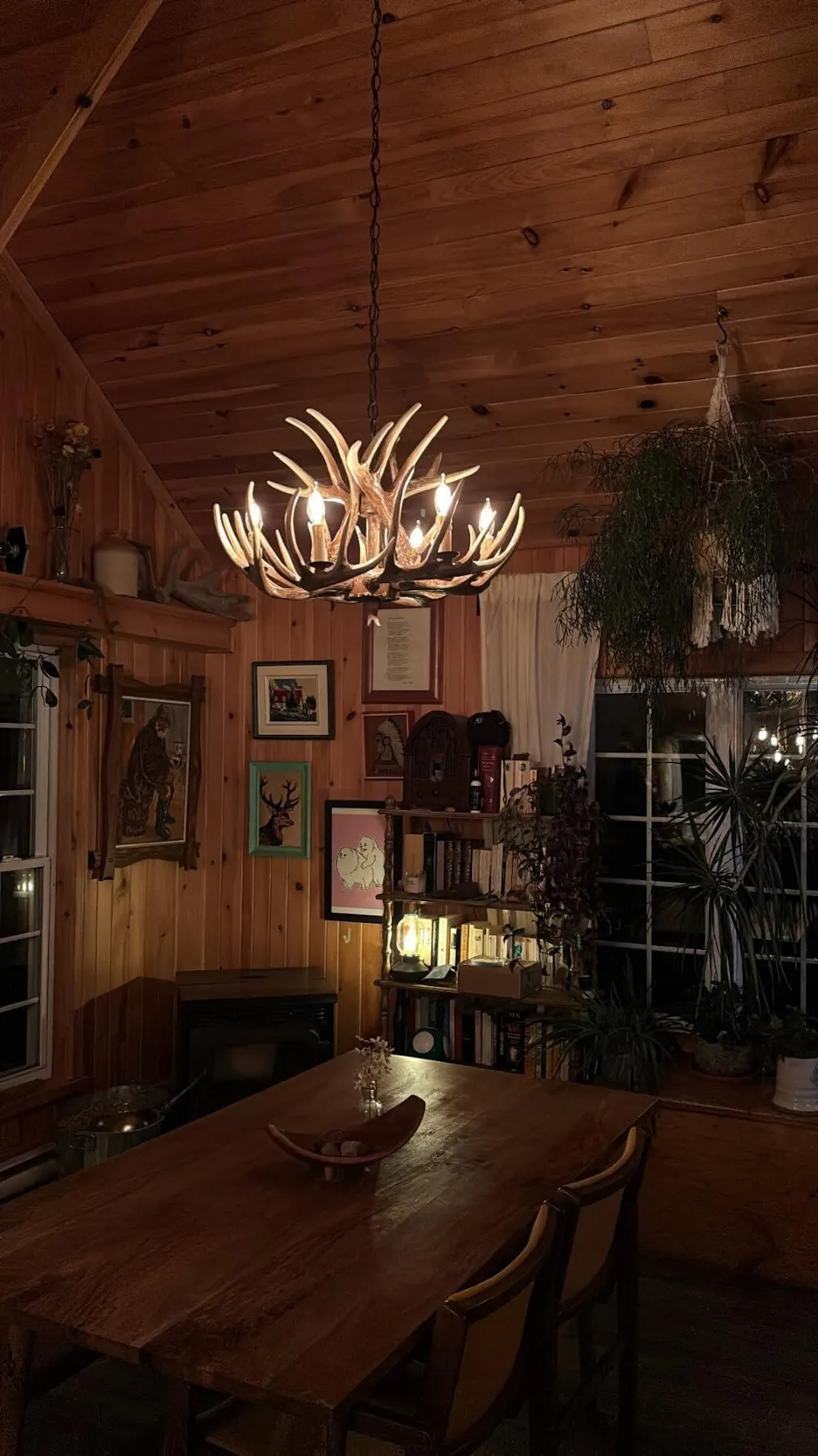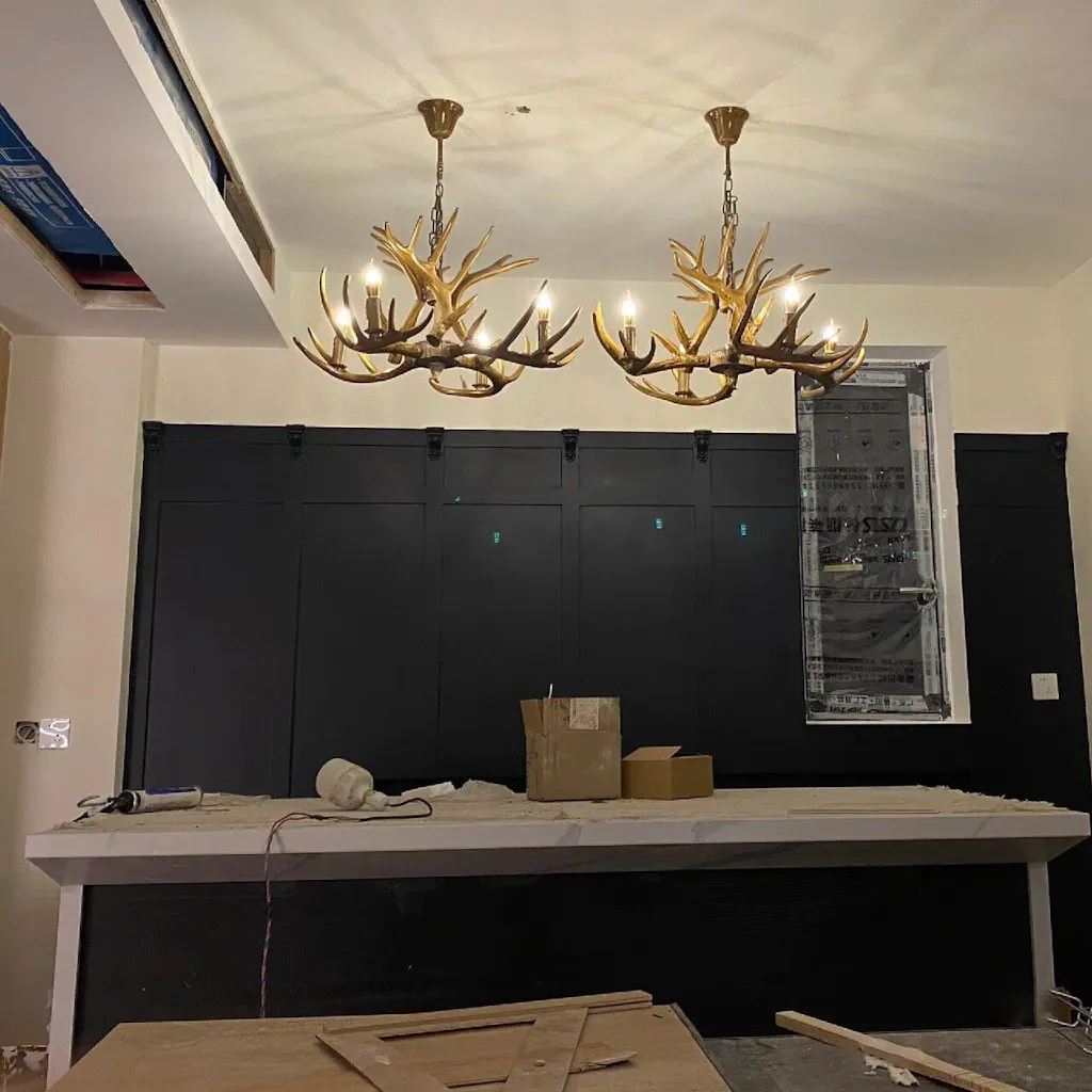 La lámpara de araña rústica con astas muestra la belleza natural de las astas. El cálido resplandor de varias lámparas ilumina un espacio, creando una atmósfera acogedora y añadiendo carácter a cualquier decoración del hogar.