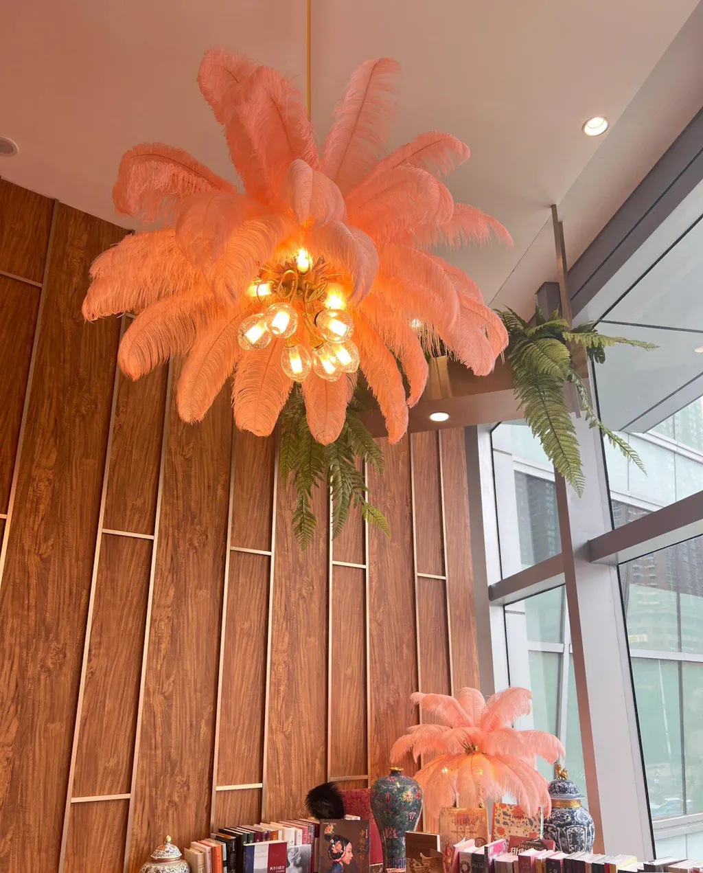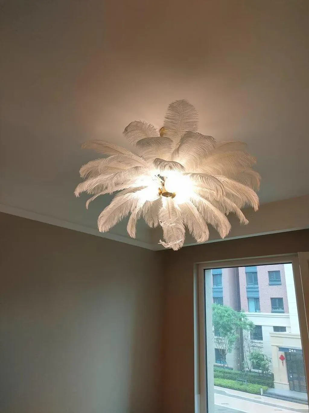 Lámpara de plumas de avestruz