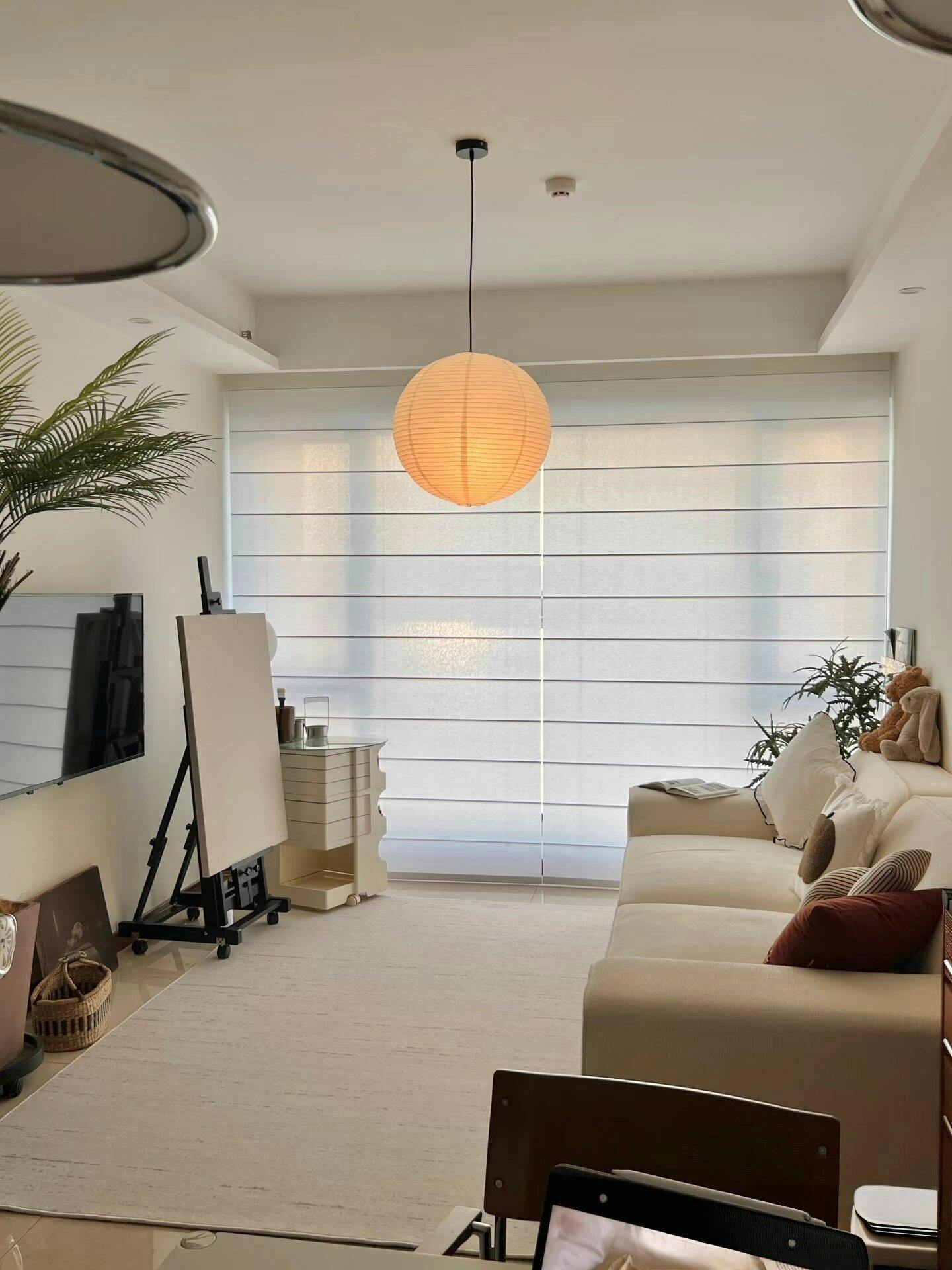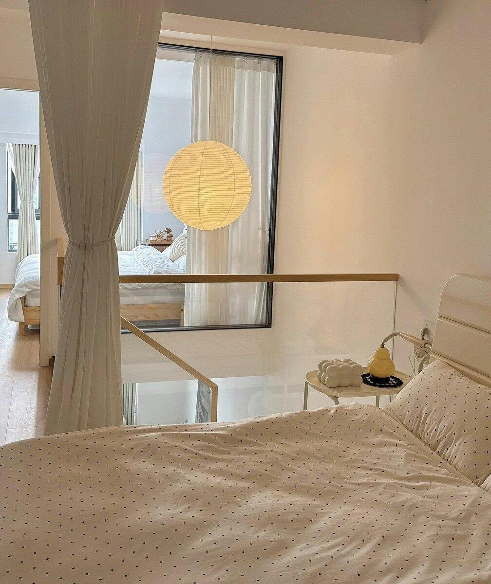 The Antizer Akari Spherical Pendant Light blends Japanese craftsmanship with modern minimalism. Crafted from durable washi paper and a sleek metal frame, it diffuses soft, warm light—perfect for bedrooms, dining rooms, or serene living spaces.