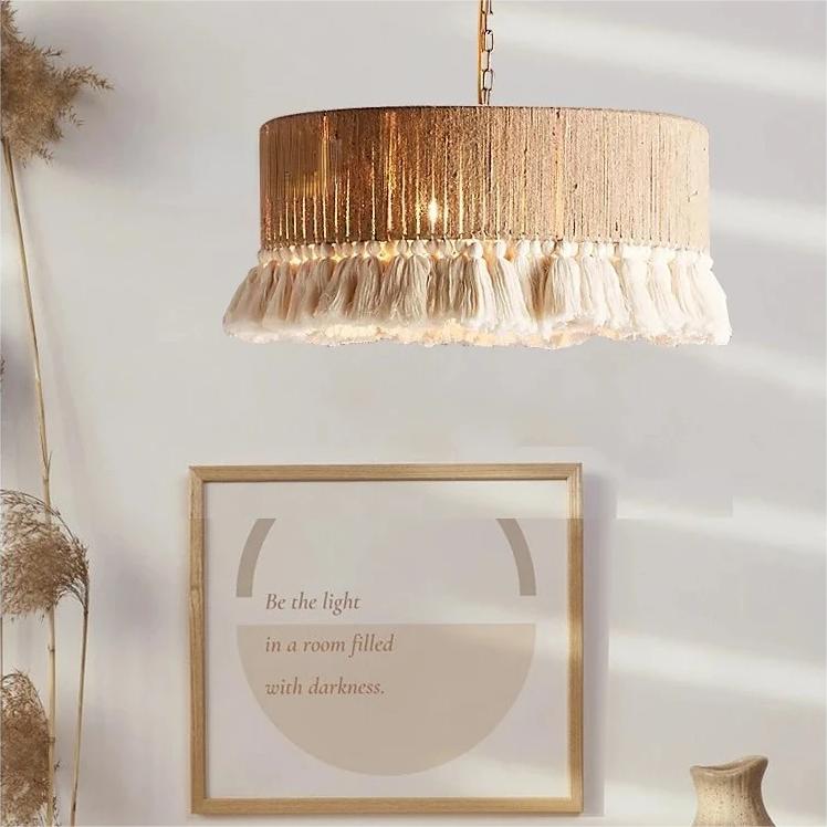 Antizer Boho Vintage Twine Fringe Pendant Light