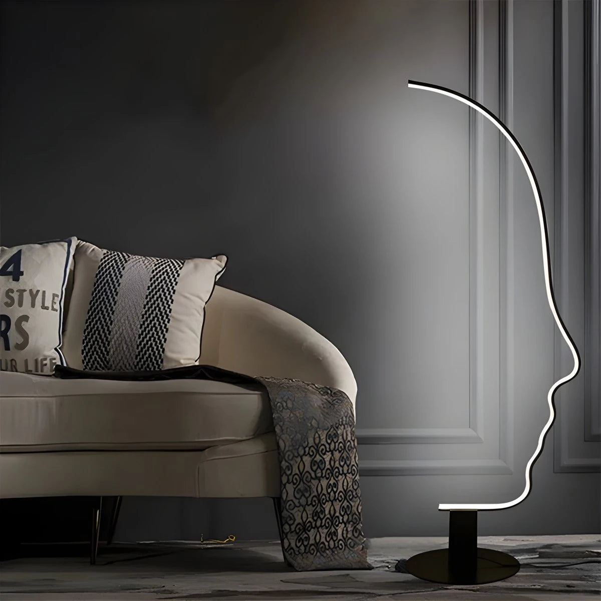 A striking blend of art and illumination, this floor lamp transforms spaces with its abstract facial profile silhouette. The hollow metal design projects captivating shadow patterns, while the concave lampshade creates a mesmerizing interplay of light and dark - perfect for adding artistic intrigue to modern interiors.