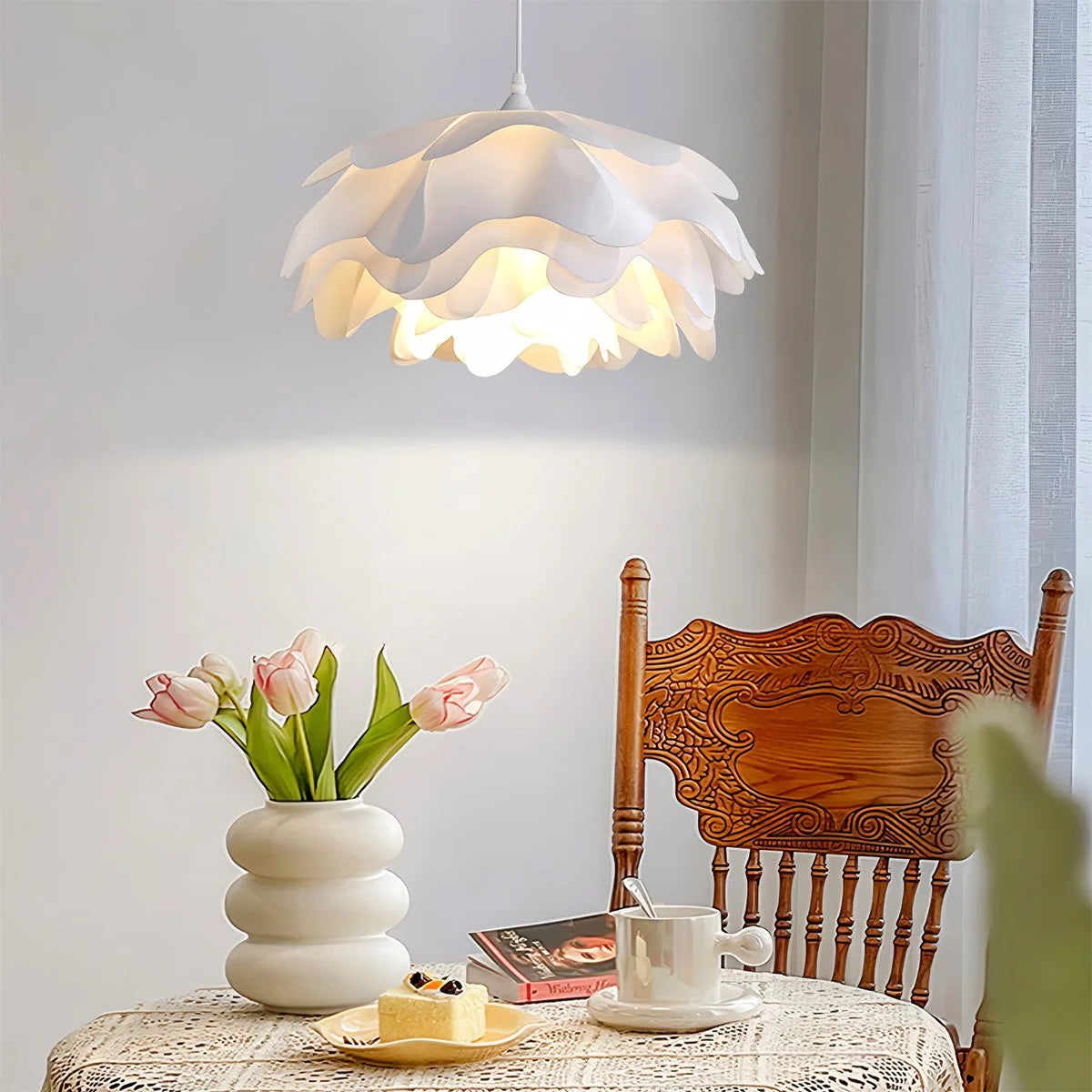 This Flower Shaped White Pendant Lamp brightens any room with its layered acrylic shade and soft, comfortable illumination. Its sculpted white flower silhouette adds a striking visual touch, making it a standout piece that elevates modern interiors with gentle elegance.
