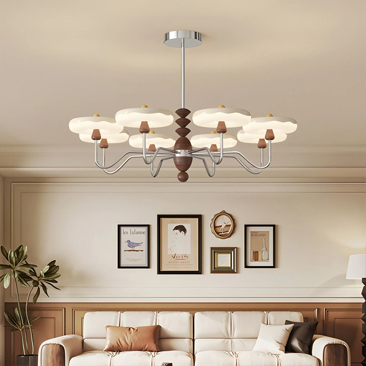 A perfect fusion of retro-futurism and Parisian elegance, this statement chandelier features a sculptural UFO silhouette wrapped in a luxurious cream finish. The integrated lighting emits a soft, golden glow that enhances both modern and transitional spaces with its unique blend of vintage charm and space-age flair.