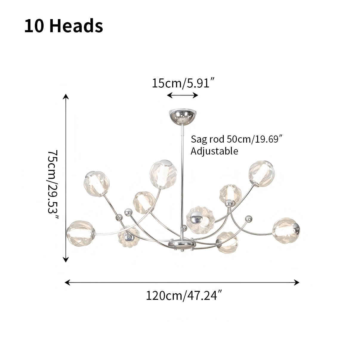 This chandelier masterfully blends industrial durability with artistic elegance. Its robust carbon steel structure supports exquisite hand-blown twisted glass globes, creating a stunning centerpiece that projects captivating light patterns. Perfect for adding a touch of sophisticated, modern artistry to any room.