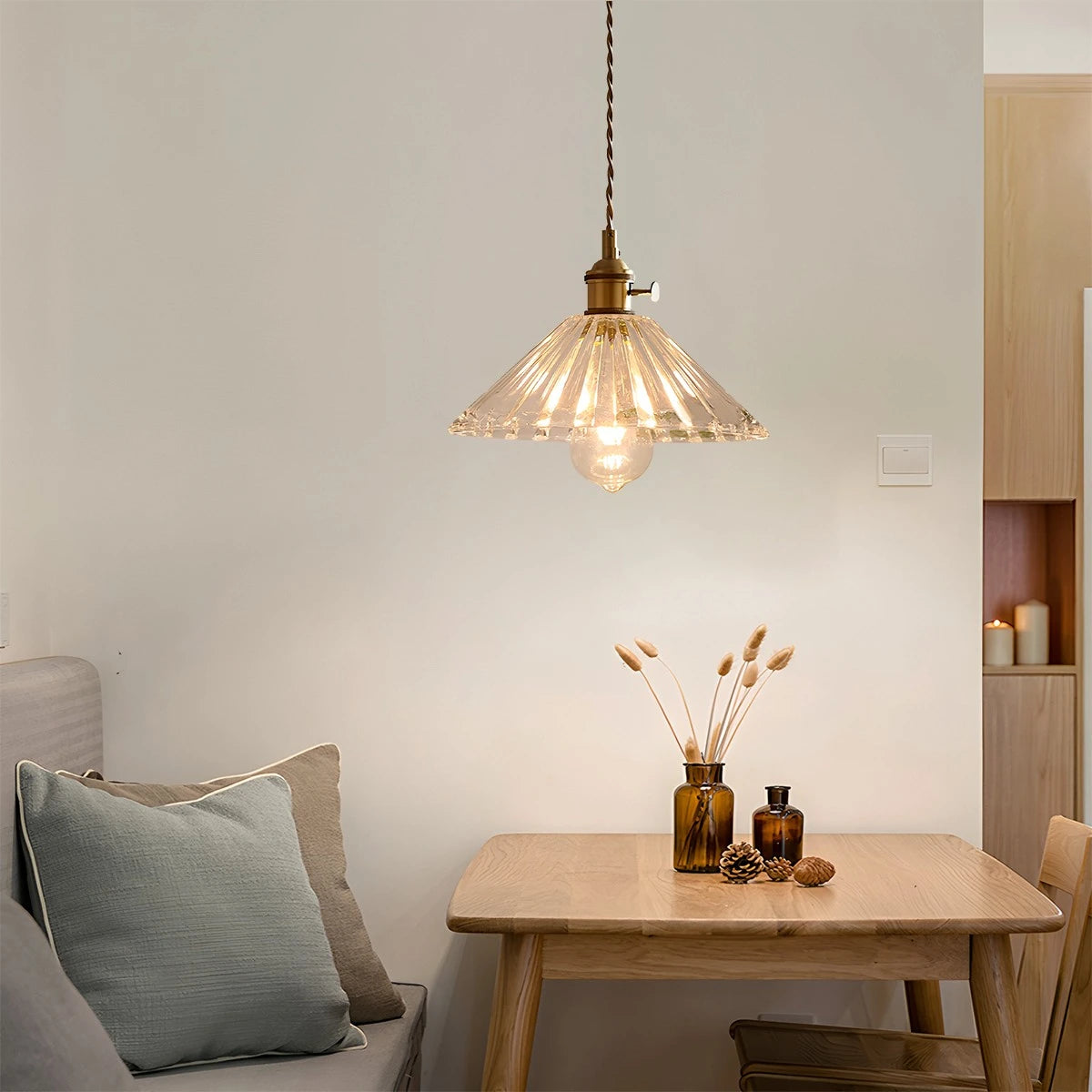 - Elegant Glass Shade – Softens light for a warm, inviting ambiance
