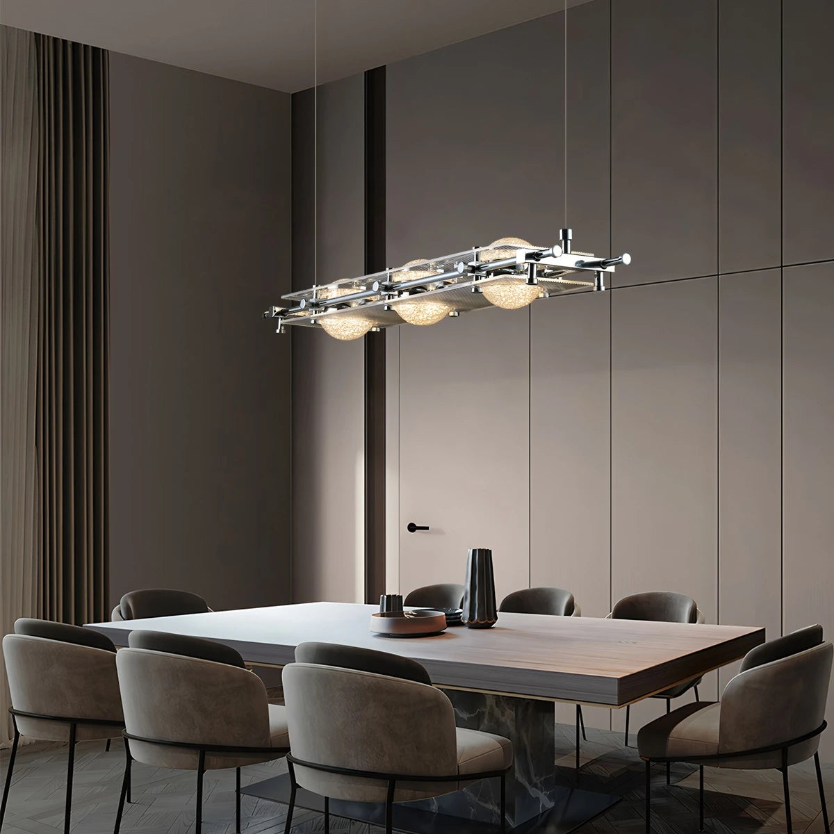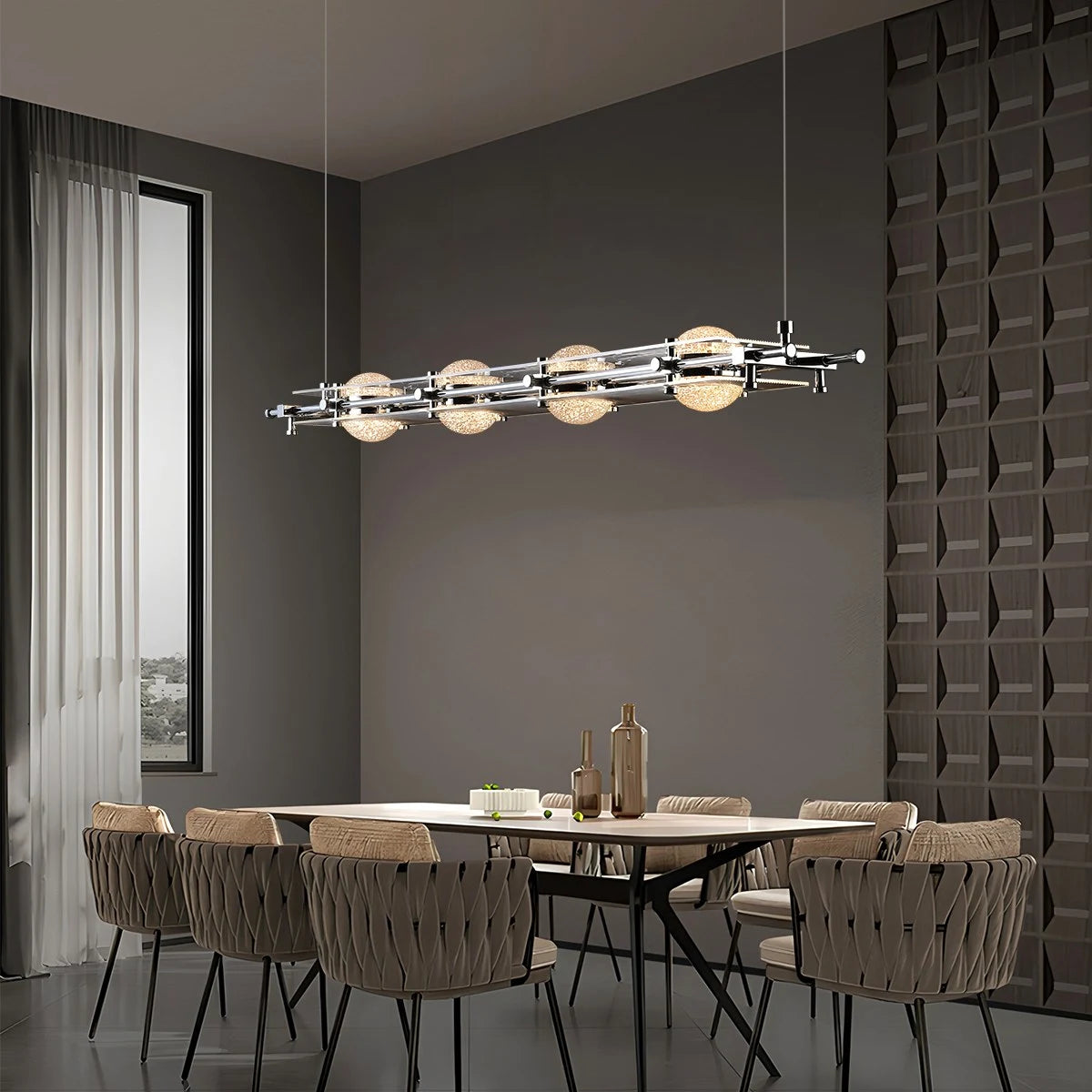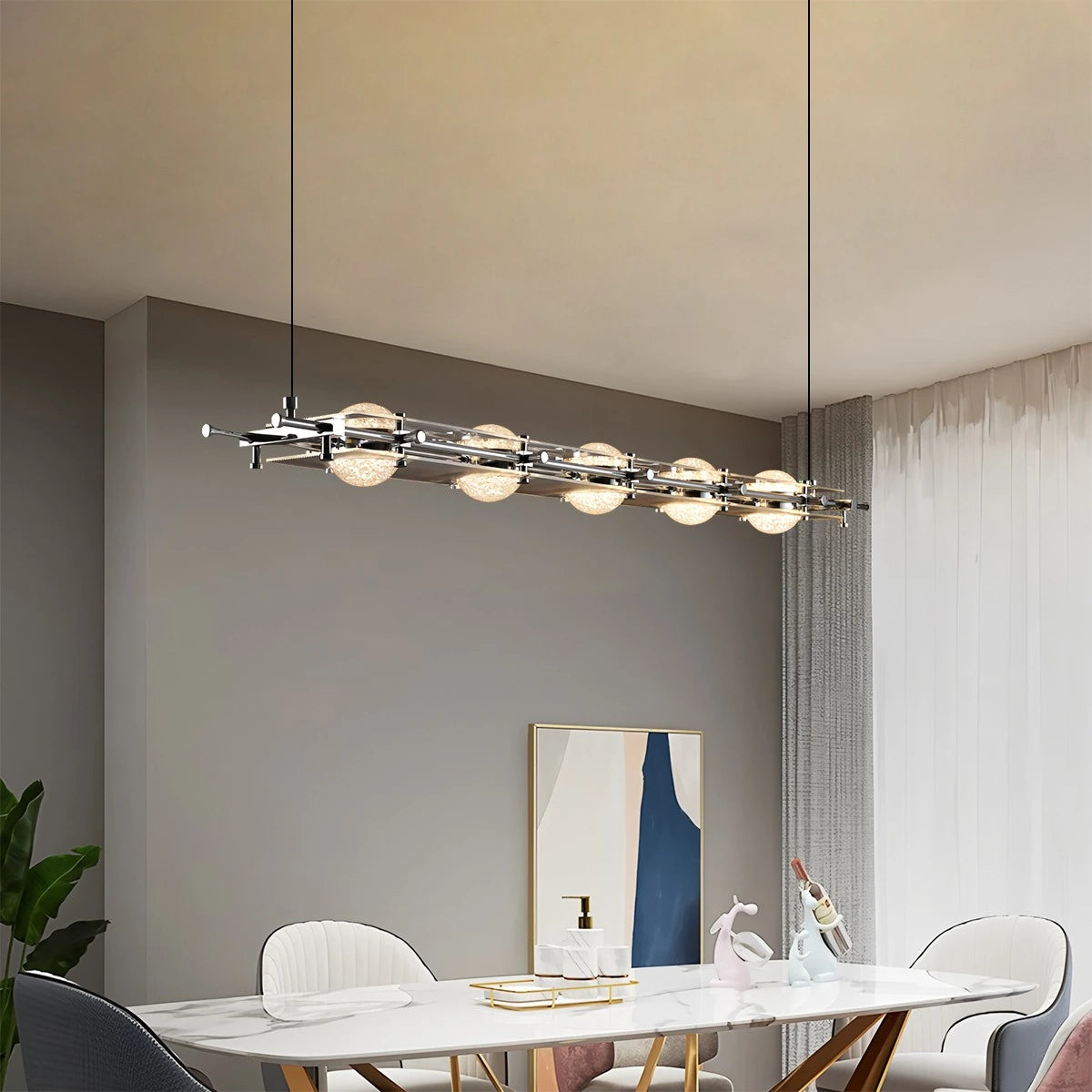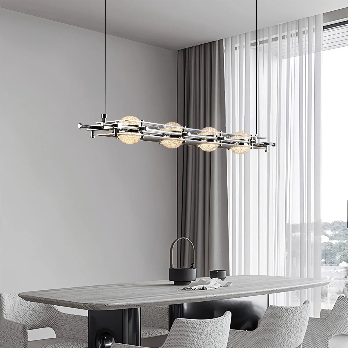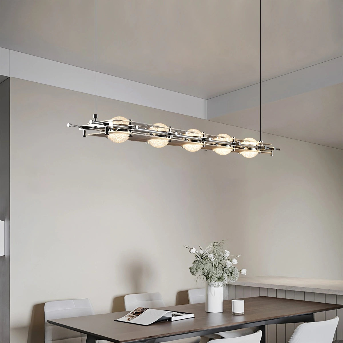 The Antizer Italian Light Luxury Long Planetary Pendant Light draws inspiration from interstellar aesthetics. Featuring a carbon steel frame and acrylic domed shades that resemble floating planets, it blends structure with elegance to create a luminous centerpiece. Perfect for dining rooms, kitchen islands, or modern living spaces.