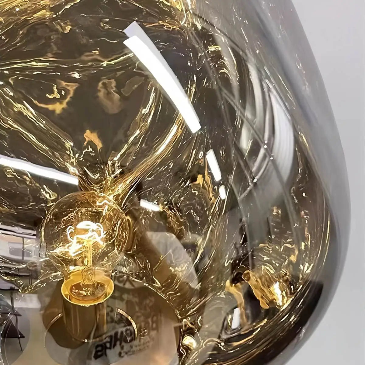 Illuminate your space with the mesmerizing Lava Cone Fat Table Lamp. Its half-metalized glass creates a striking optic effect—glowing translucently when lit and reflecting like a mirror when off. The artfully distorted form mimics molten glass, adding a unique, sculptural ambiance to any room.