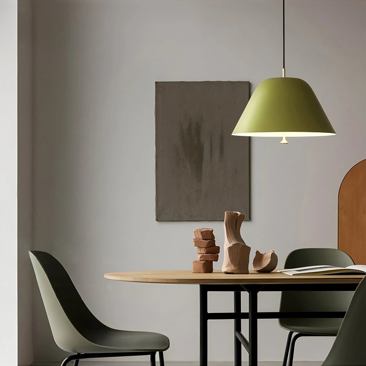 The Minimalist Pendant Lamp features a sleek floating design with a wide shade and glass diffuser that casts warm, ambient light. Accented with elegant brass knobs and offered in two sizes and three colors, it delivers refined, understated style—perfect for dining rooms, kitchens, living areas, or bedrooms.