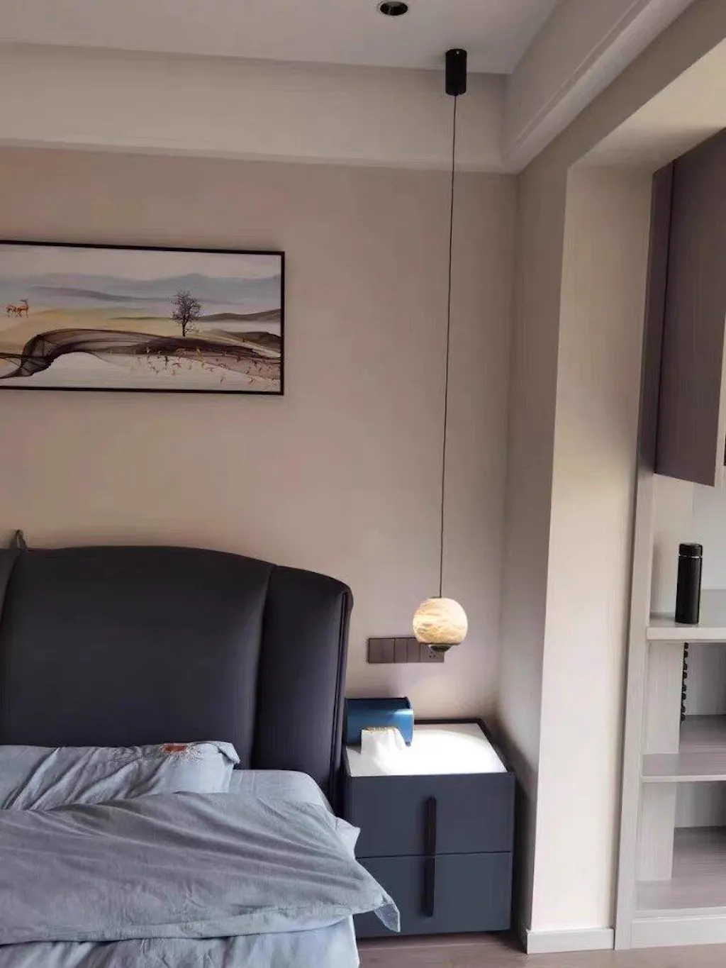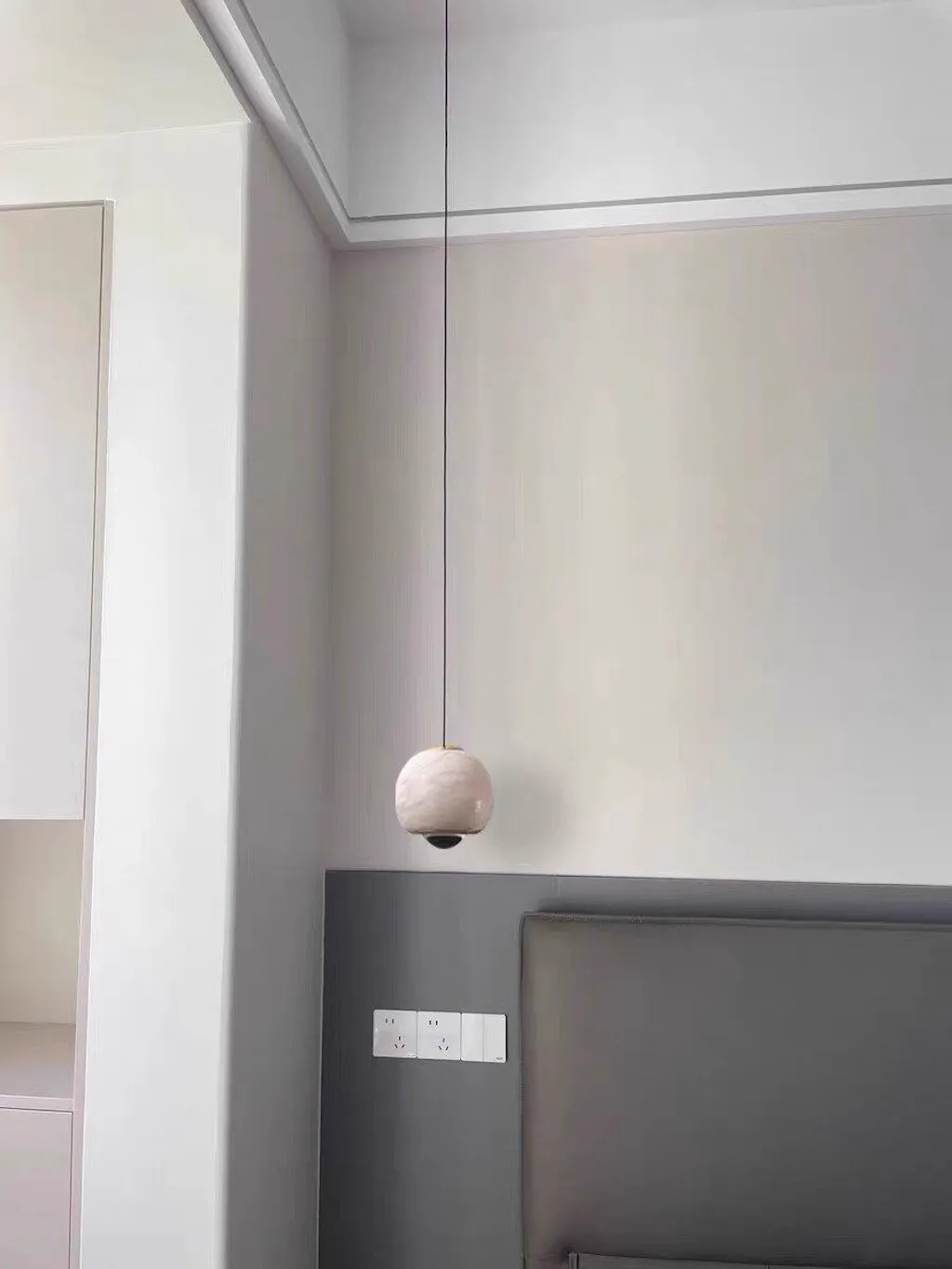 A sophisticated lighting solution that blends organic beauty with modern functionality. The hand-selected alabaster shade diffuses a warm glow, while the adjustable suspension allows perfect placement above any surface.