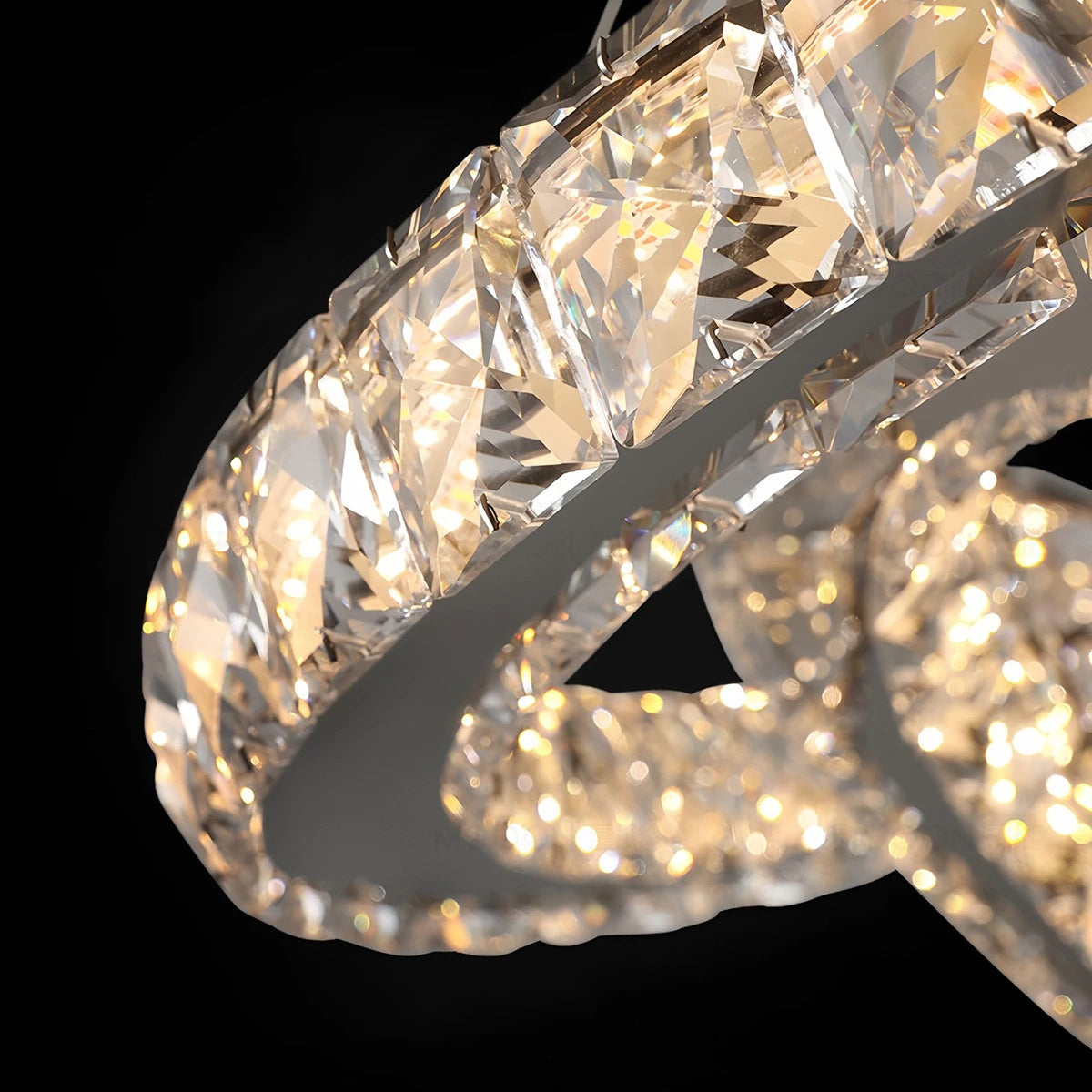 - Interlocking ring design with crystal embellishments
