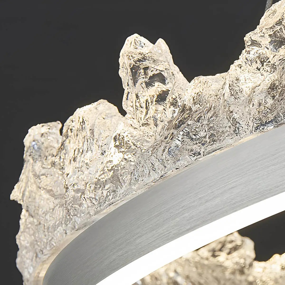 The Antizer Modern Light Luxury Iceberg Chandelier features a sleek aluminum frame paired with hand-carved platinum crystal that evokes the beauty of floating ice. Its refined texture and radiant glow make it a stunning centerpiece for dining rooms, living spaces, or grand entryways.
