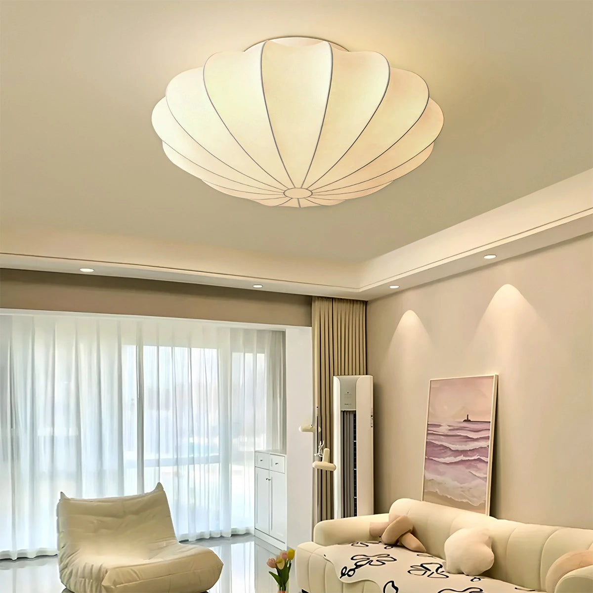 A refined blend of tradition and modernity, the Antizer Modern Silk Lantern Ceiling Light brings timeless elegance to any room. Inspired by classic lantern silhouettes, its soft silk-like fabric shade diffuses light gently, creating a warm and serene atmosphere.
