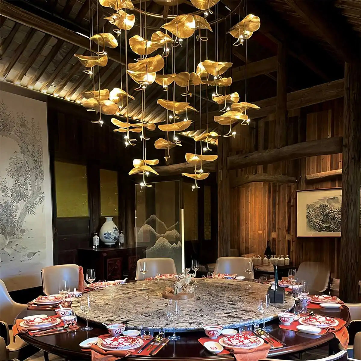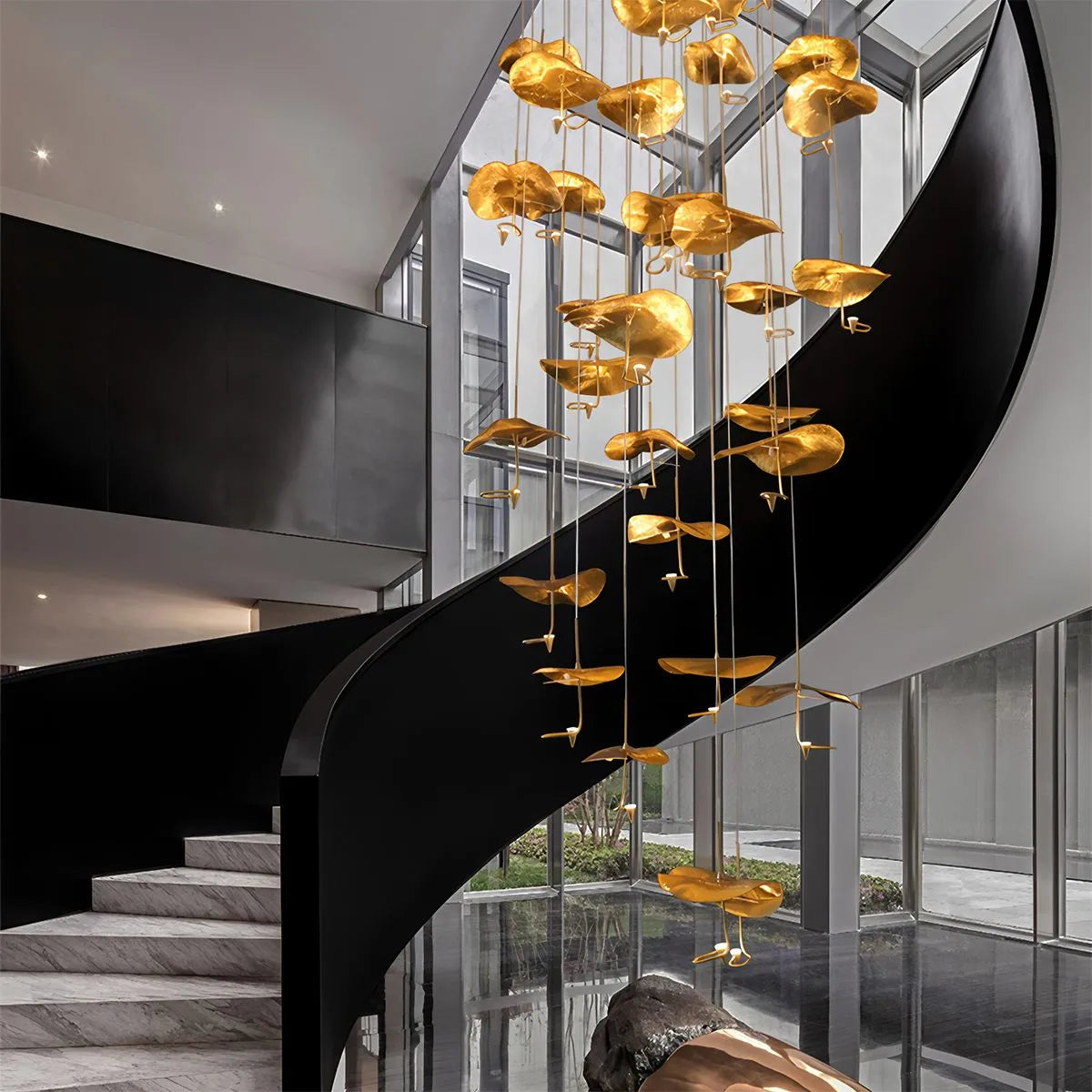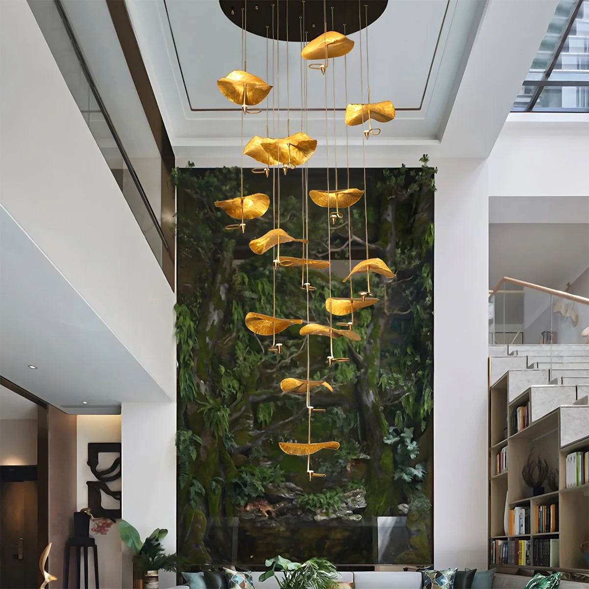 Bring a magical glow to your home with the Antizer Brass Lotus Leaf Chandelier. Handcrafted brass lotus leaves cascade in a graceful tiered design, reflecting soft golden light that adds warmth and elegance to any room. Blending modern sophistication with organic beauty, it’s perfect for dining areas, bedrooms, staircases, and high-ceiling spaces.