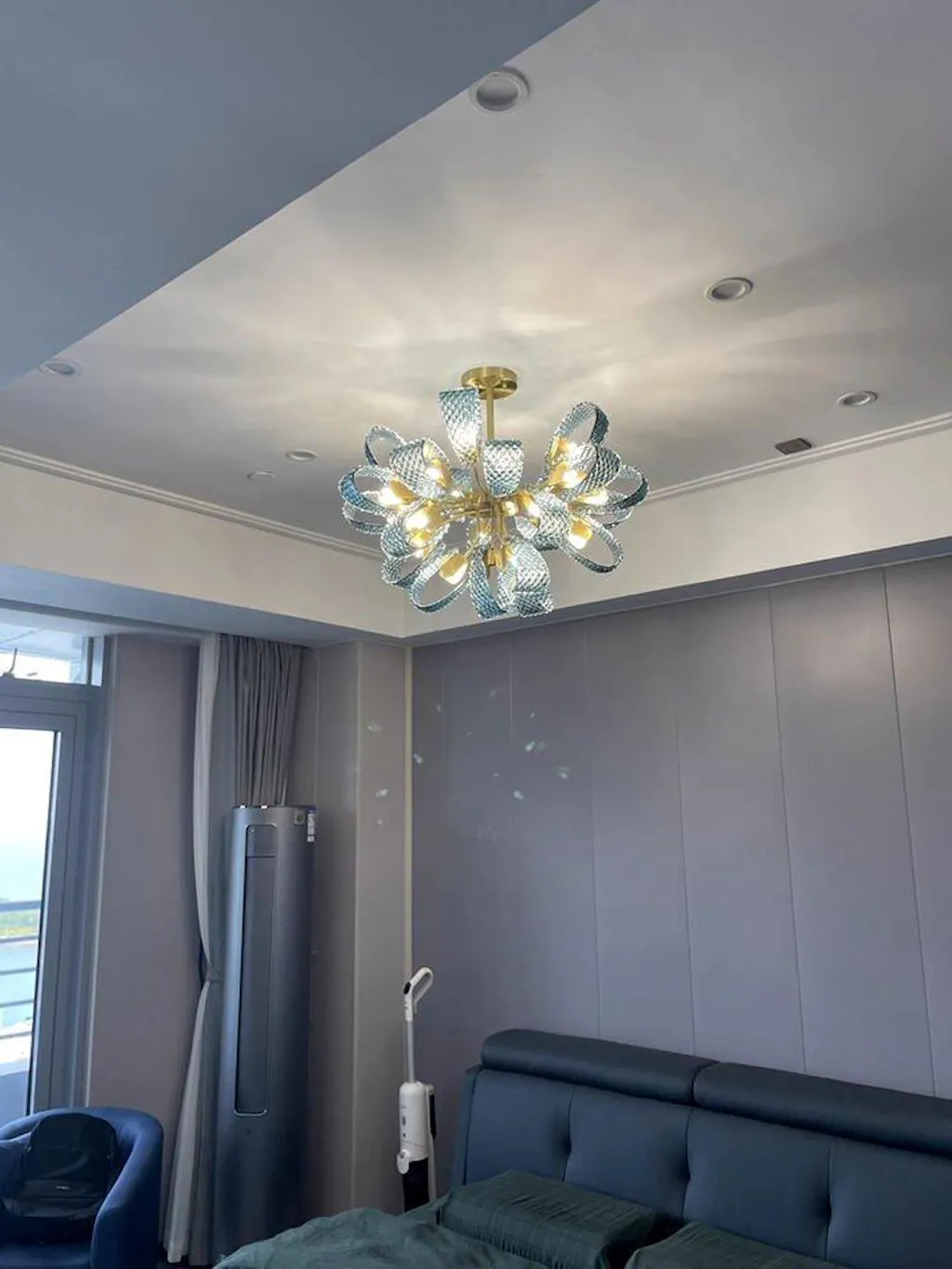 Make a bold design statement with the Antizer Peacock Blue Art Glass Chandelier, a striking fusion of color and craftsmanship. Featuring richly saturated peacock blue glass elements, this chandelier exudes artistic elegance and modern sophistication, making it a perfect focal point for upscale interiors.