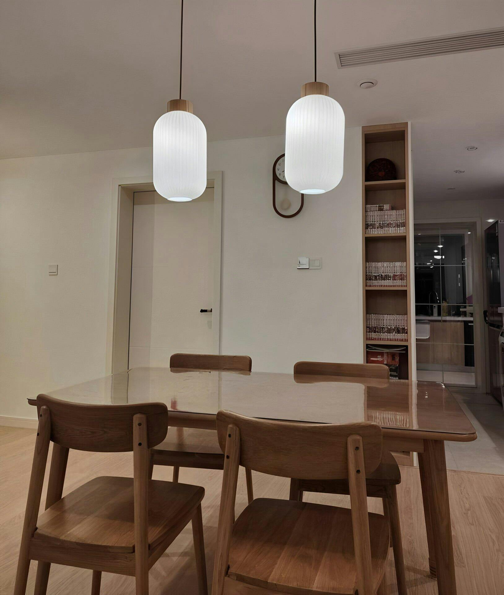 Bring a touch of organic modern style to your space with the Rime Pendant Lamp. Inspired by the elegant shape of an acorn, it features a sleek glass lampshade and a warm wood accent for soft, comfortable light diffusion. Perfect for creating an inviting ambiance over kitchen islands, dining tables, or in cozy bedrooms.