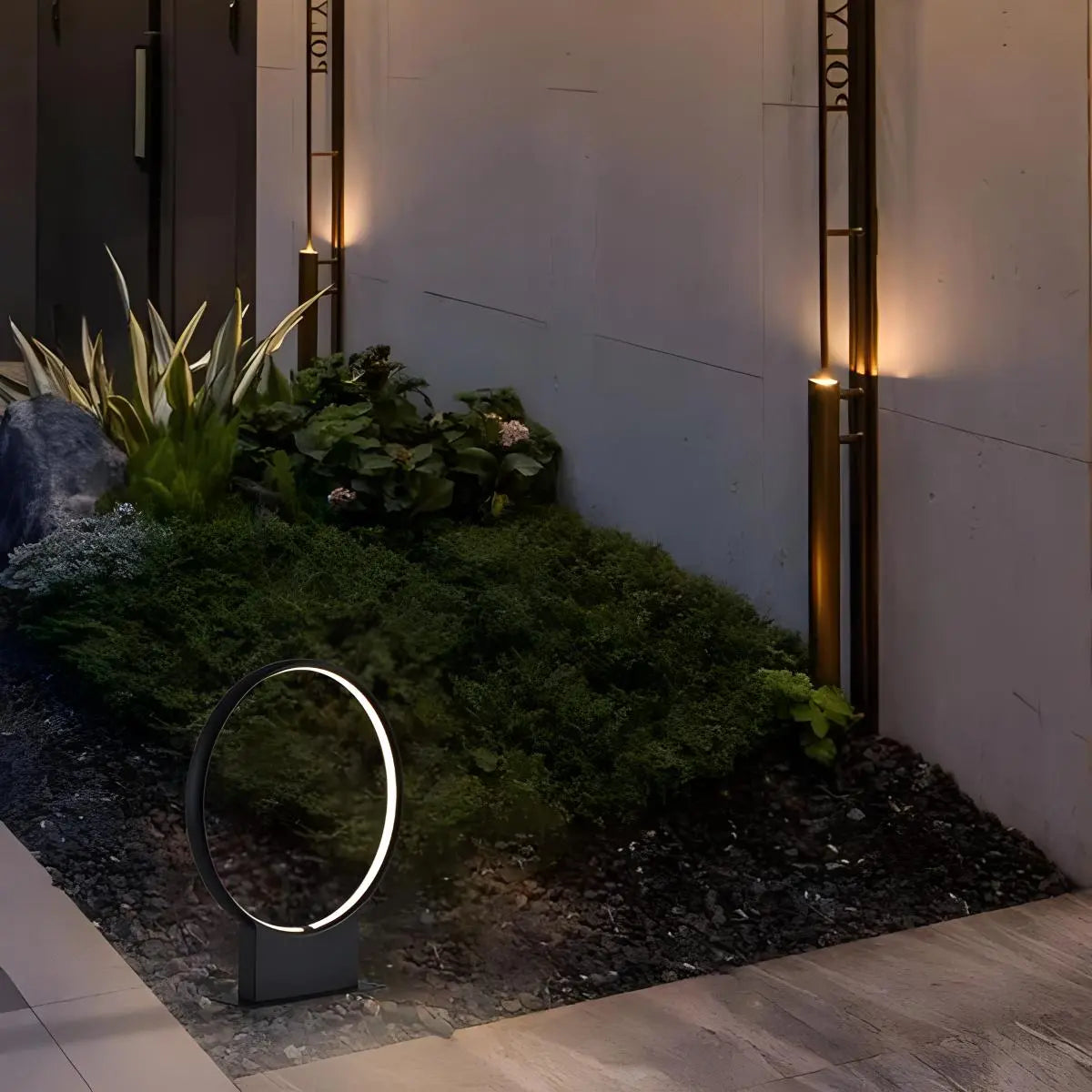 A contemporary outdoor lighting solution featuring a distinctive inner glow ring that casts soft, ambient illumination. Designed with waterproof construction for reliable performance in all weather conditions.