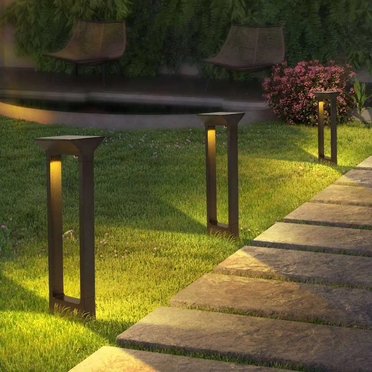 - Solar-Powered: Eco-friendly lighting using solar energy, no wiring needed.