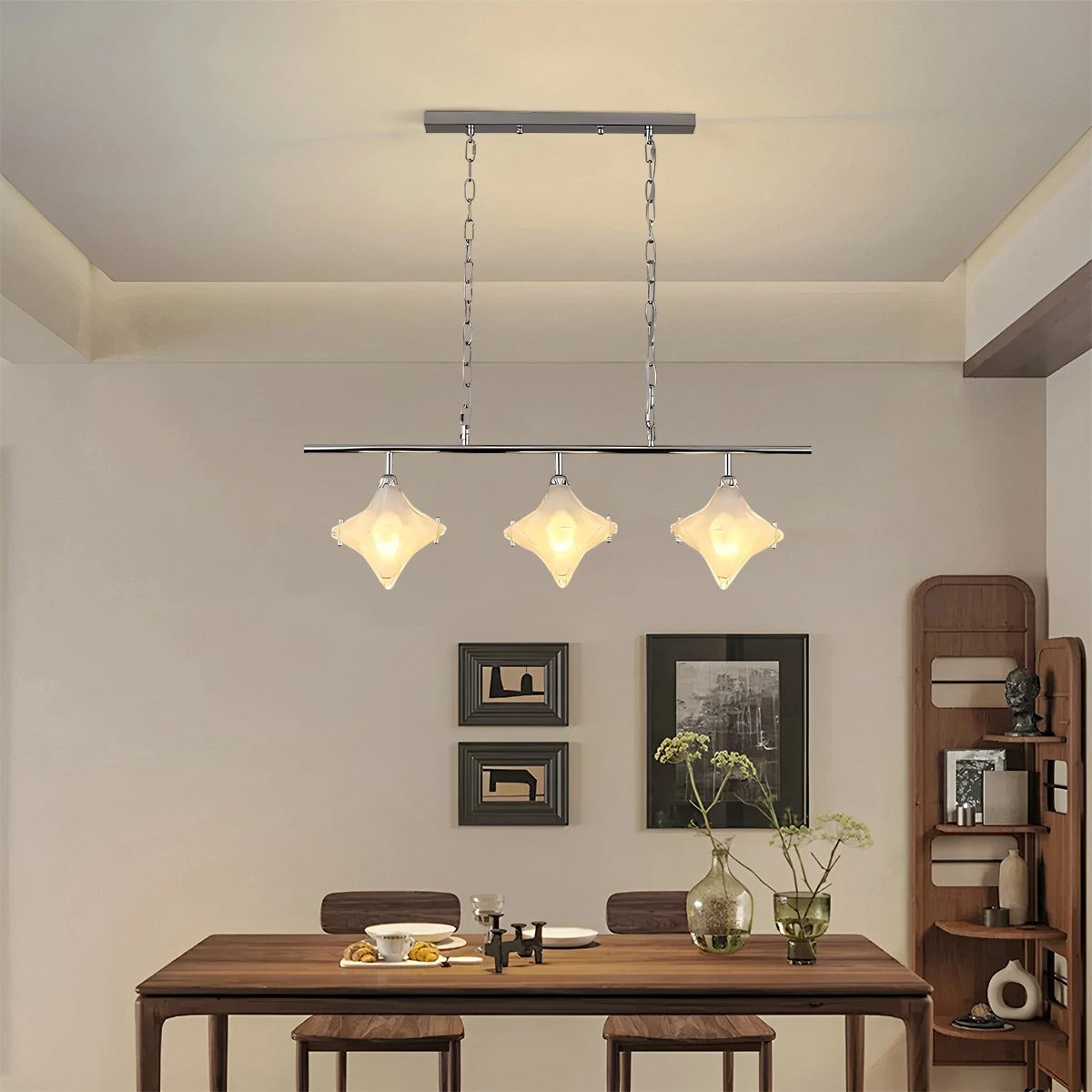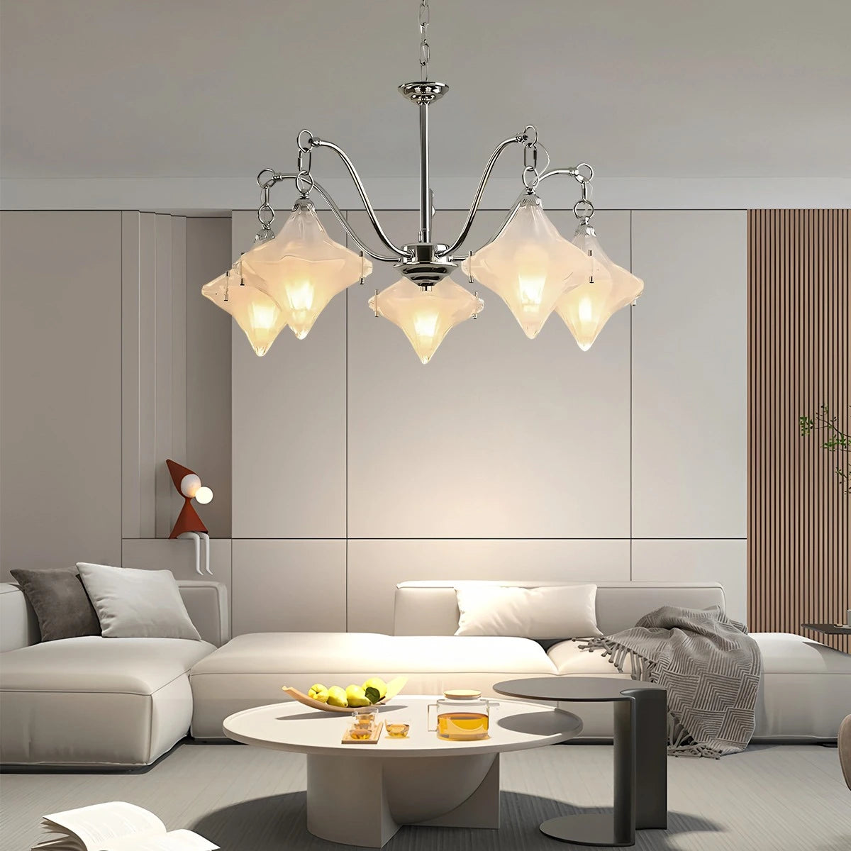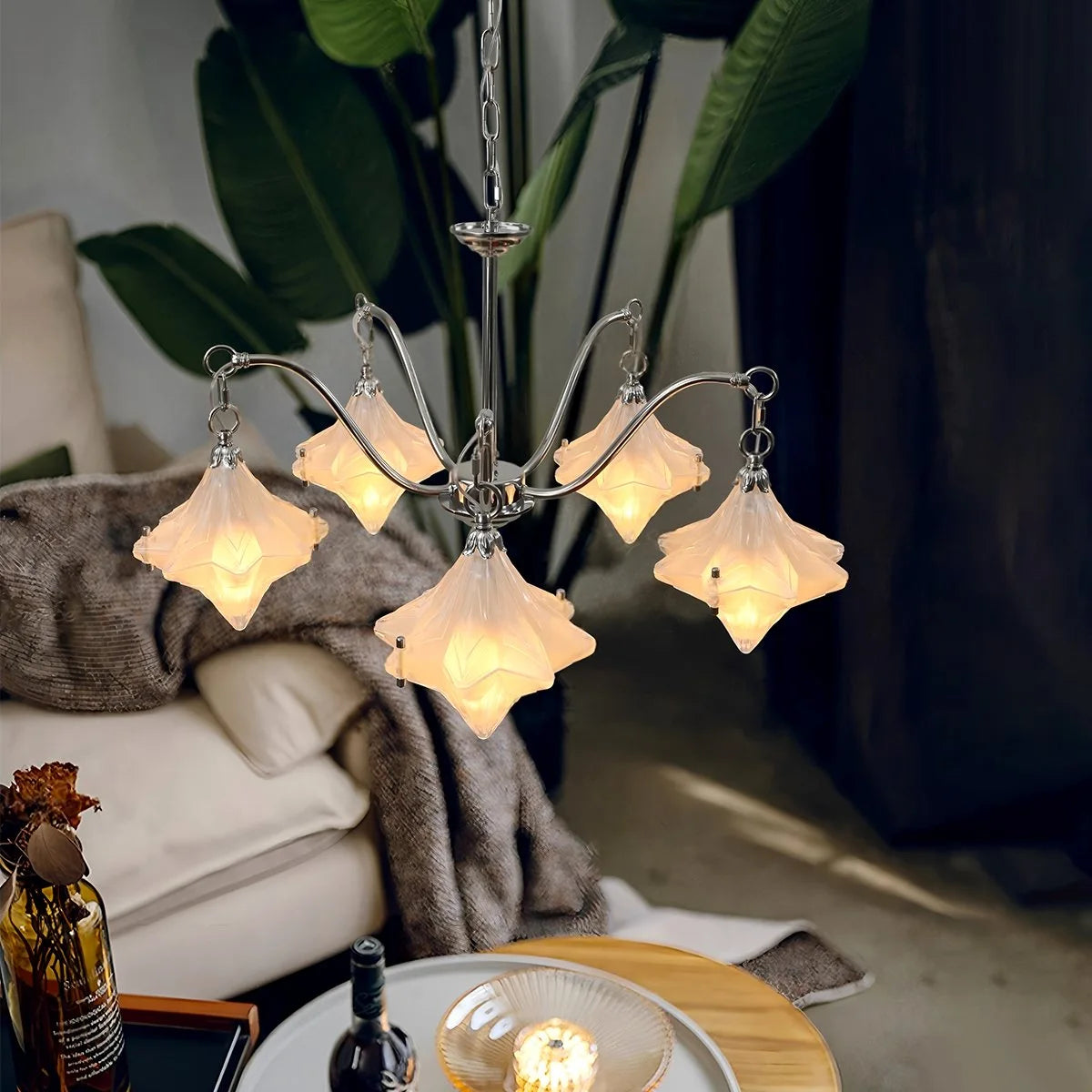 Inspired by the night sky, the Antizer Sylume Star-Shaped Chandelier combines a sleek luxury frame with a hand-crafted star glass shade. Its soft, glowing light creates a warm, inviting ambiance while acting as a striking decorative centerpiece. Perfect for living rooms, bedrooms, and dining areas.