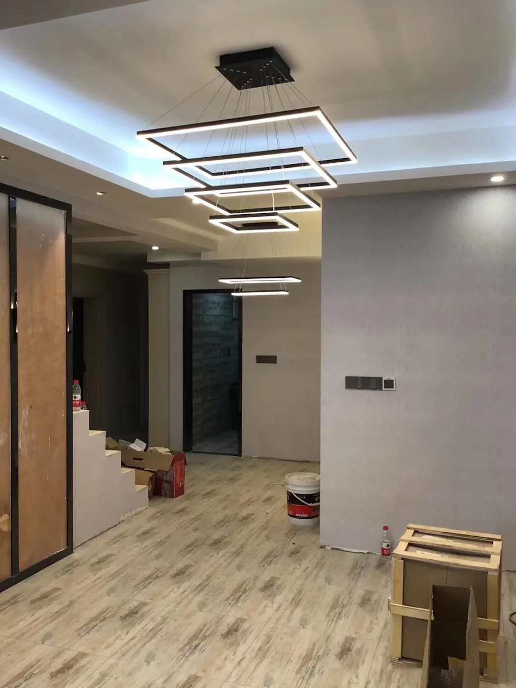 Make a bold statement with this modern, multi-tiered chandelier. Featuring clean lines and a sleek black finish, it’s perfect for adding a touch of contemporary elegance to dining rooms, entryways, or living spaces.