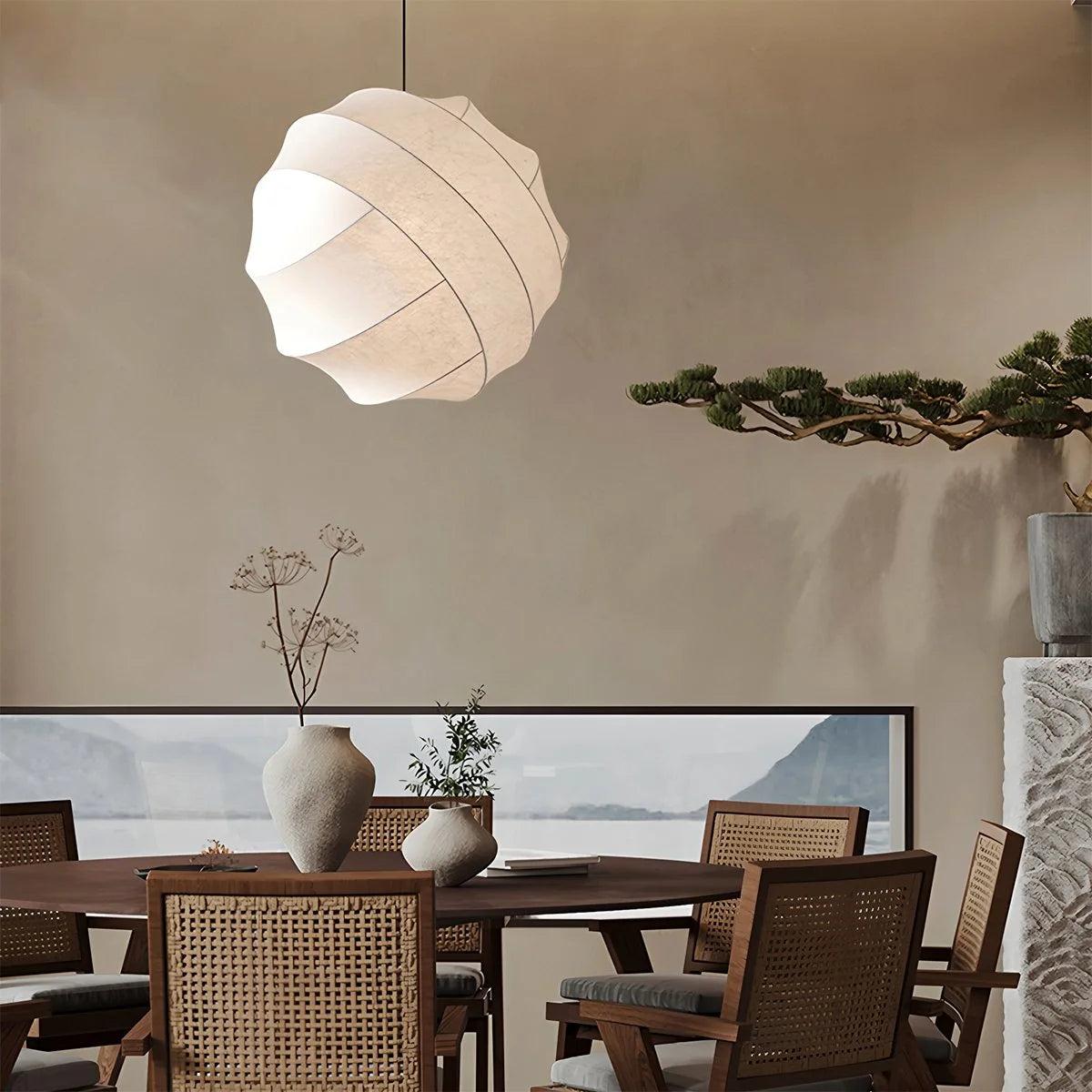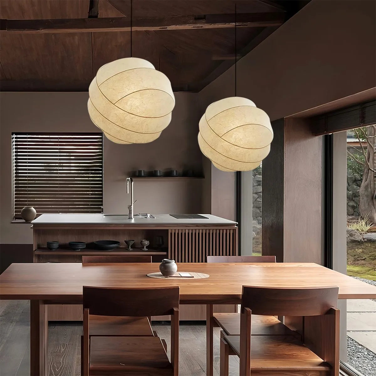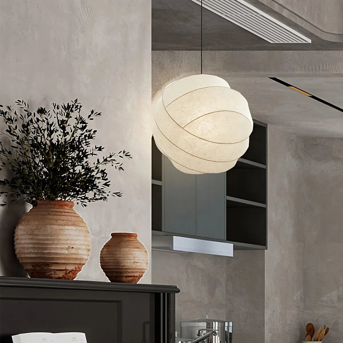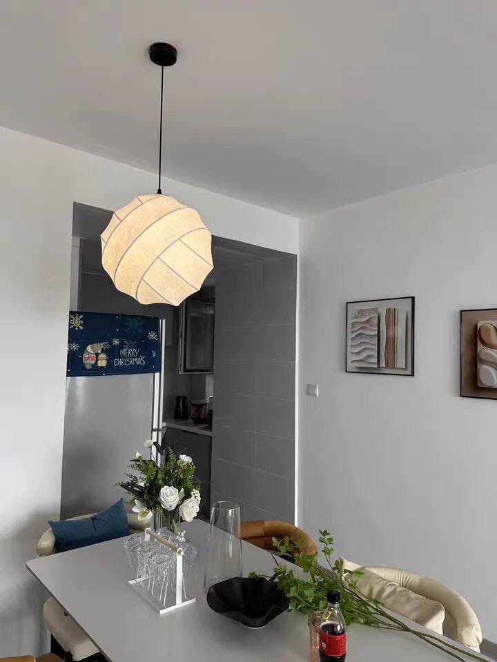 The Antizer Turner Pendant Light combines sculptural geometry with a soft, organic texture. Featuring a cocoon-like fiber shade and sleek metal frame, it diffuses a warm, inviting glow that elevates dining areas, bedrooms, or living spaces with modern elegance.