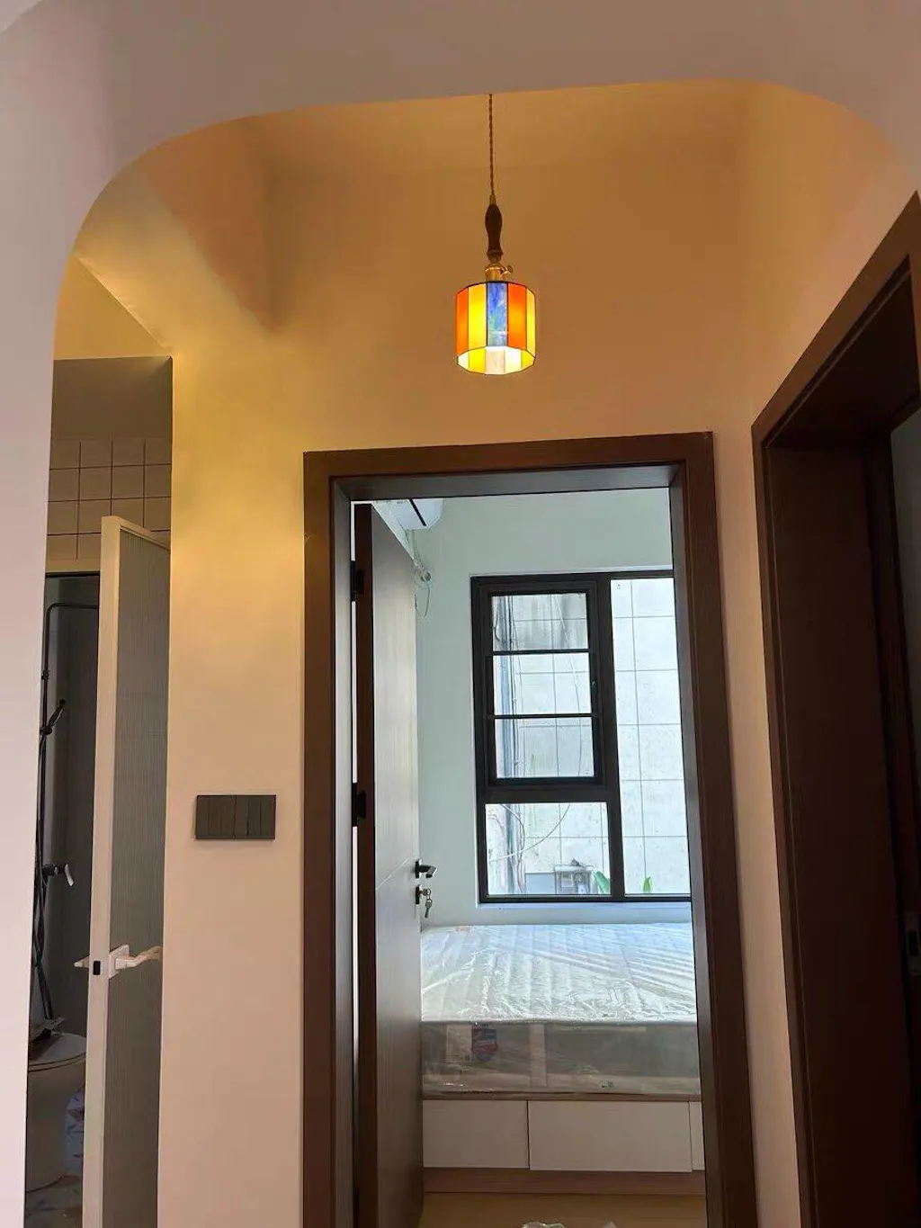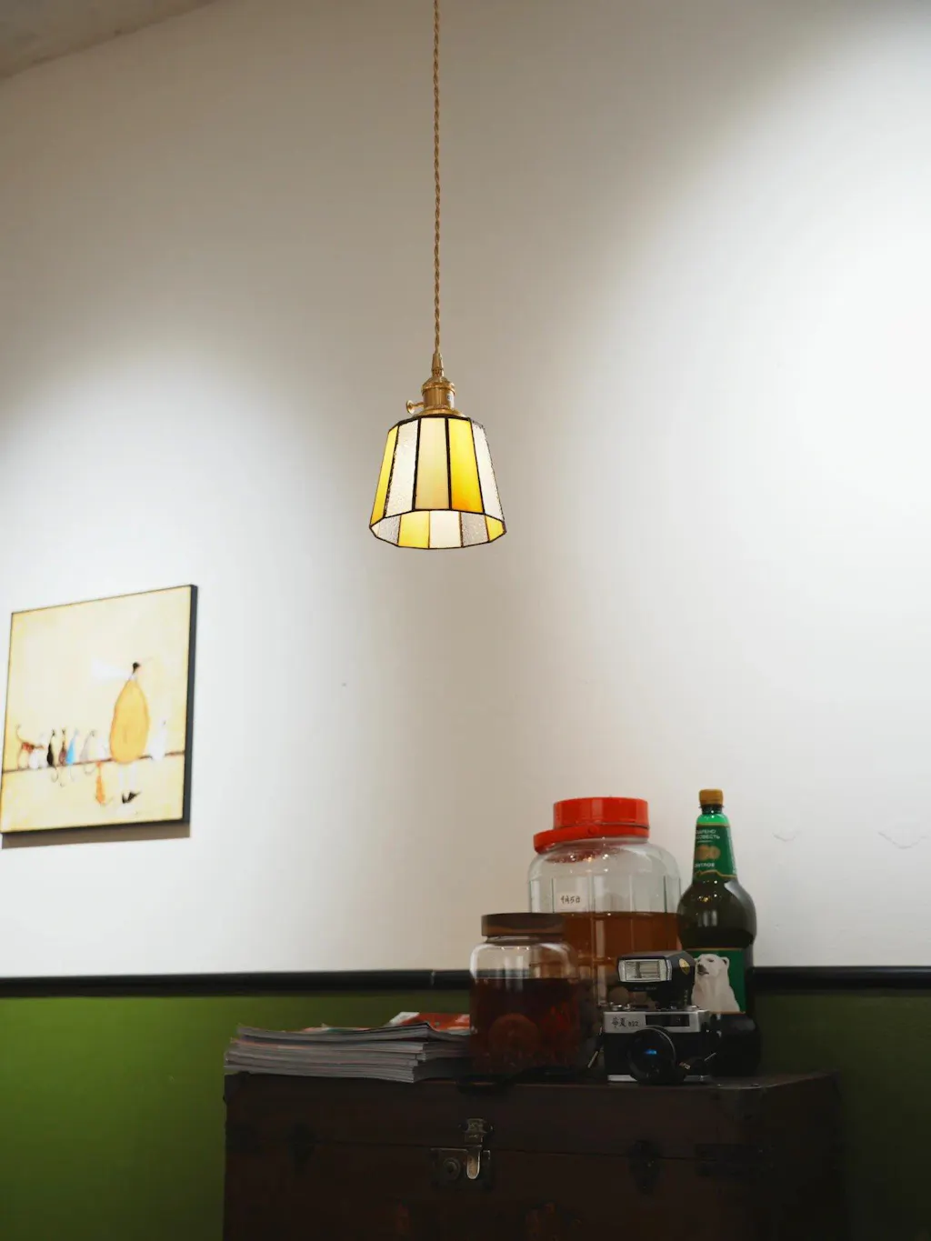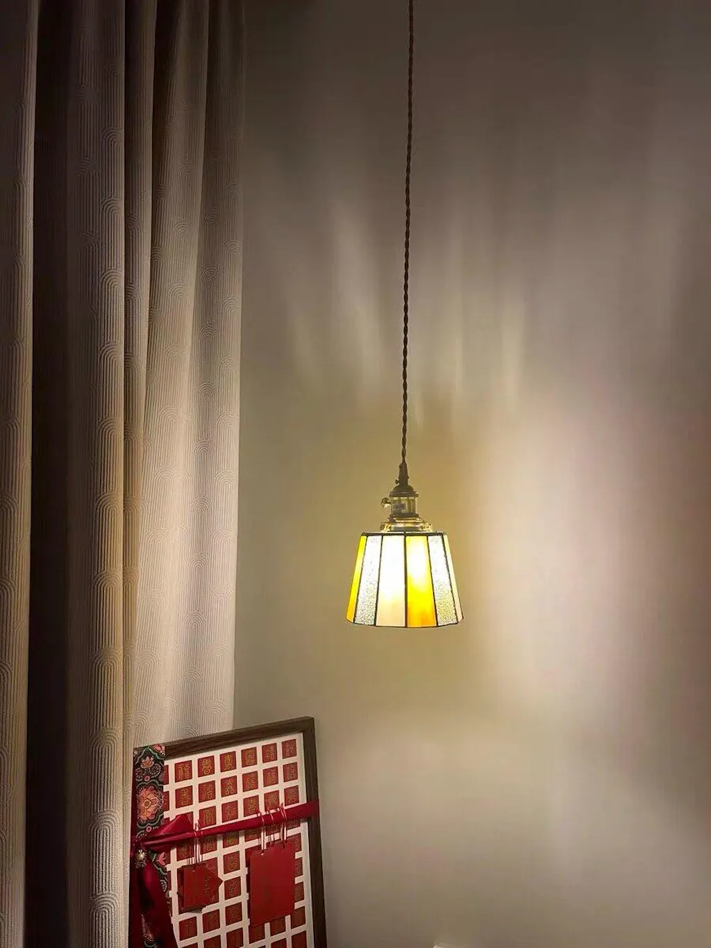 - Handcrafted Stained Glass Shade – Multicolored panels bring artistic vintage flair.