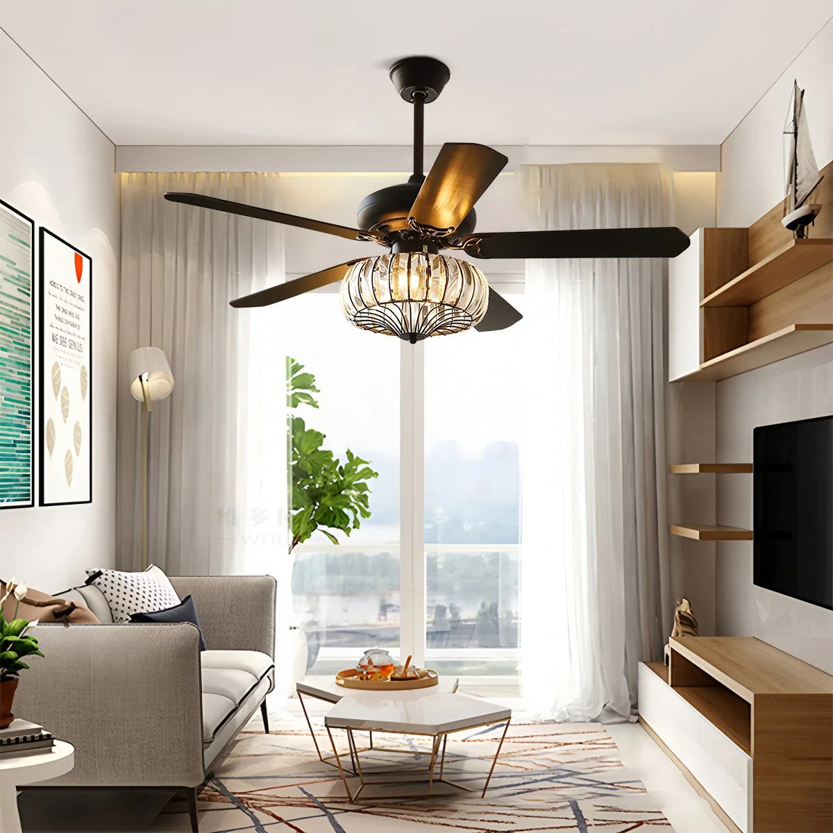 A stunning fusion of vintage elegance and modern innovation, this ceiling fan transforms from a dazzling crystal chandelier into a powerful cooling system with its retractable blades. The perfect marriage of form and function for sophisticated living spaces.