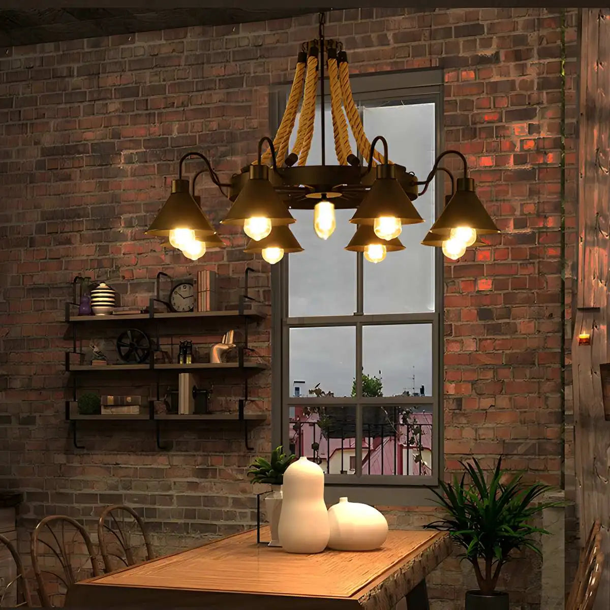 Bring rugged charm and vintage industrial flair to your space with the Antizer Vintage Industrial Rope Chandelier. Featuring woven rope and metal accents, this bold fixture adds rustic character and warm ambiance to dining rooms, lofts, kitchens, or cafes. Its open design allows light to flow freely, creating a cozy, inviting atmosphere.