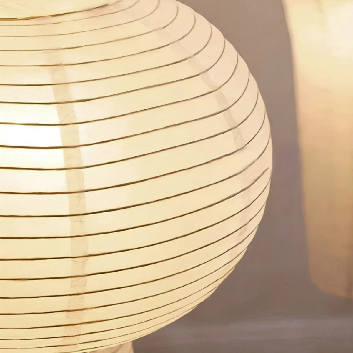 - Handcrafted Washi Paper Shade – Made from translucent mulberry bark paper that gently filters light.