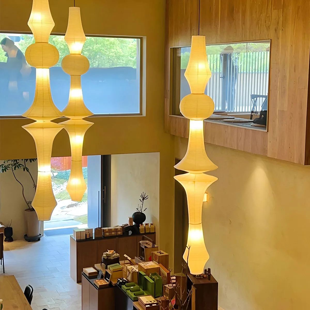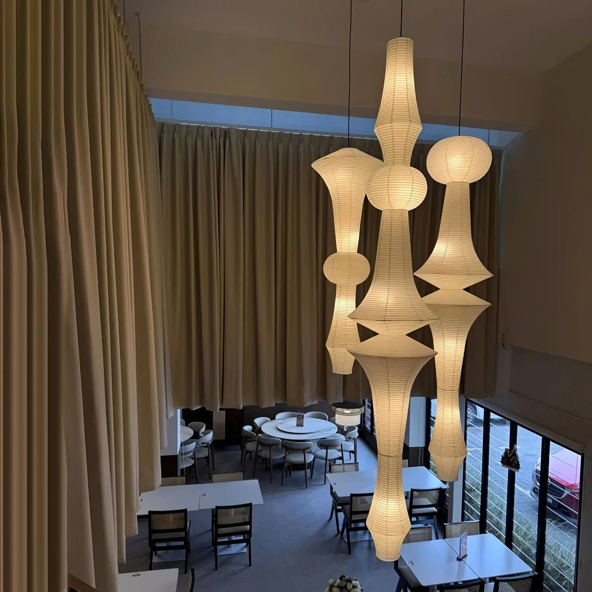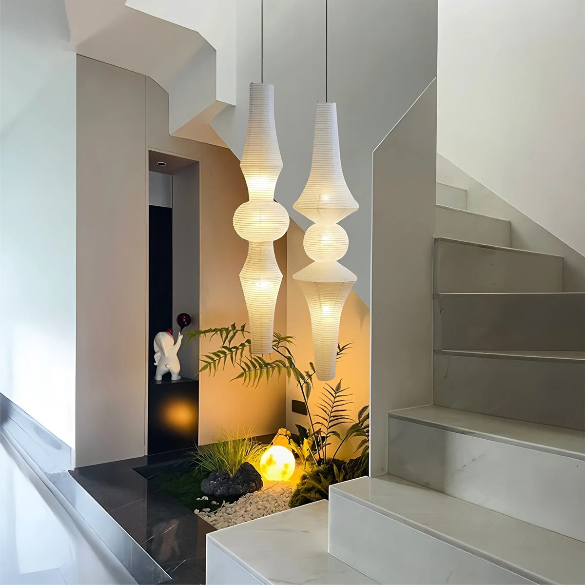 Crafted with refined detail and premium materials, the Antizer Washi Paper Corner Pendant Light brings timeless elegance and warmth to any space. Its tall, slender washi paper form softly diffuses light, creating a calm ambiance ideal for entryways, stairwells, or high‐ceiling dining areas.