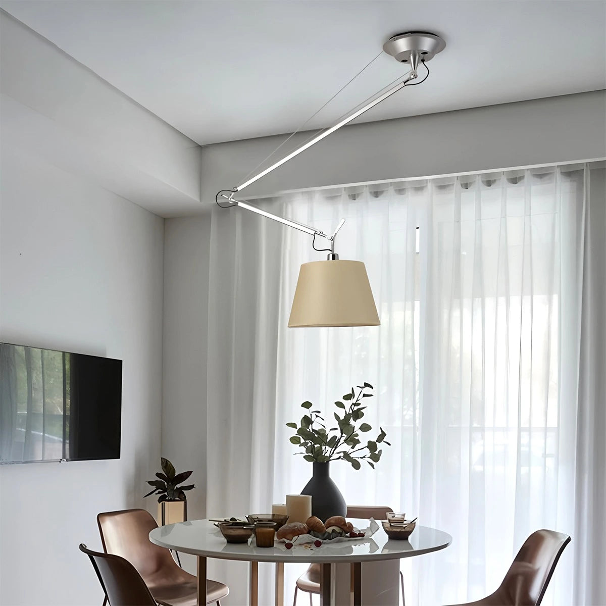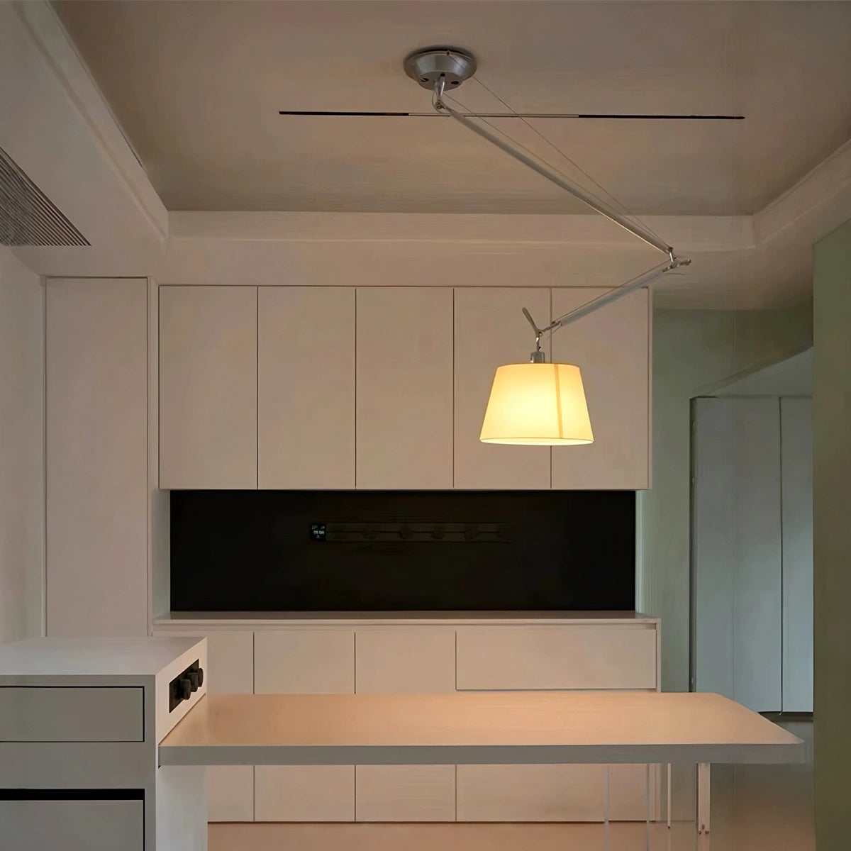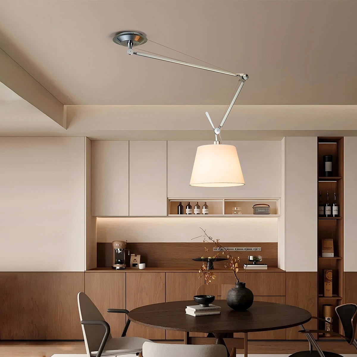 The Antizer Modern Industrial Parchment Pendant Light blends minimalist design with a refined, light-luxury touch. Its sleek aluminum frame and parchment shade offer a warm, elegant glow, while the adjustable arm provides practical flexibility—perfect for bedrooms, studies, or dining areas.