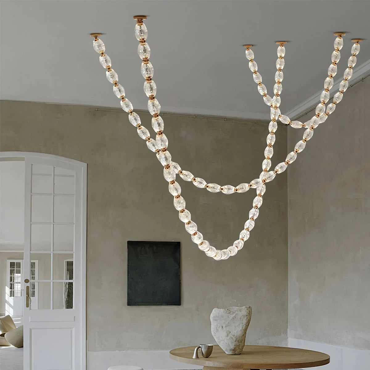 Elevate your home with the Antizer Zypheria Art Deco Czech Glass Beaded Chandelier—a captivating fusion of modern design and vintage glamour. Featuring solid faceted Czech glass paired with sleek chrome connectors, its customizable beaded strands form sculptural cascades that transform any room. Perfect for dining rooms, staircases, and elegant living spaces.