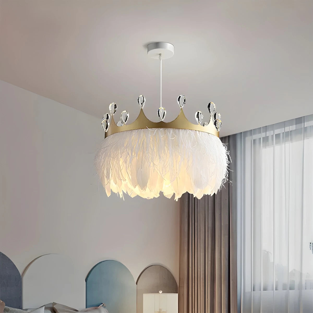 A regal lighting masterpiece that blends ethereal feather textures with dazzling crystal brilliance. This chandelier creates a luminous halo effect, casting both soft diffused light and sparkling reflections to transform dining rooms, grand entries, or master suites into palatial spaces.
